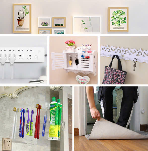 Keo có khả năng chịu vật nặng lên đến 20kg giúp dán mọi đồ vật như: chân thảm, giá treo, khung tranh, kệ, rắc cắm, giá phích cắm, bảng hiệu. Rửa, để khô sẽ dùng đi dùng lại nhiều lần.